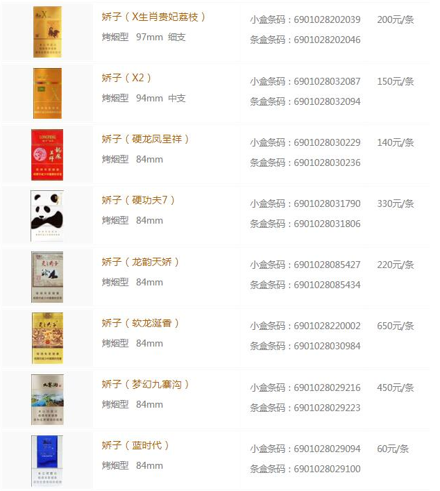 娇子香烟价格表图大全