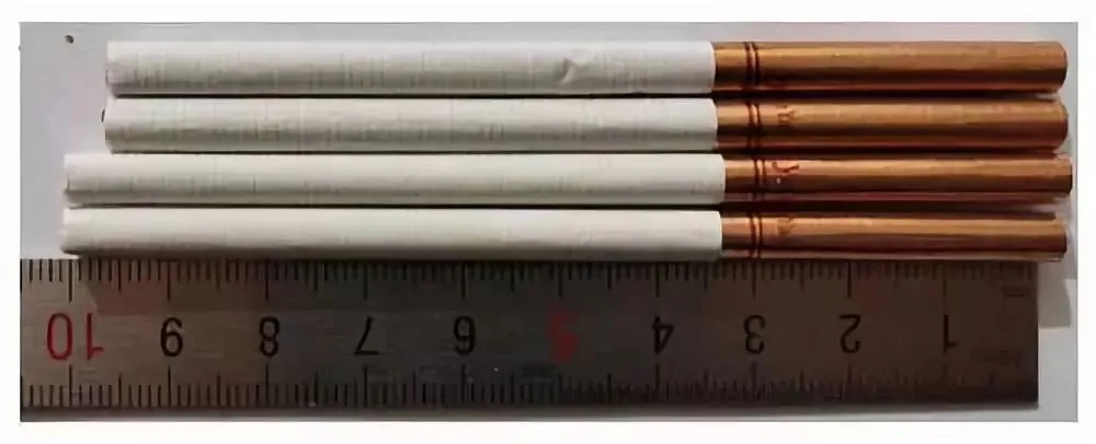 真品卷烟:烟支长度为100mm,滤嘴处有四排激光预打孔,打孔透气度好。卷烟纸颜色白,手摸烟支饱满紧实,搭扣处结合完美。烟丝呈现丝条状,色泽基本一致。