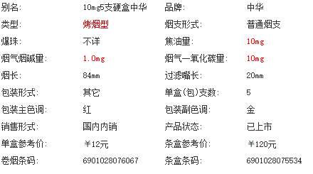 【中华5支硬盒多少钱一包 中华5支硬盒价格查询】相关推荐文章: